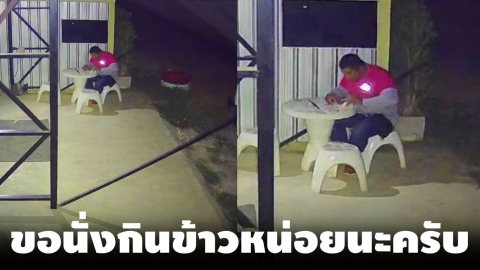 น่าเห็นใจ..พนักงานส่งอาหารหิวข้าวหนัก "ขอนั่งกินข้าวหน่อยนะครับ มันหาที่นั่งกินยากอะครับ"