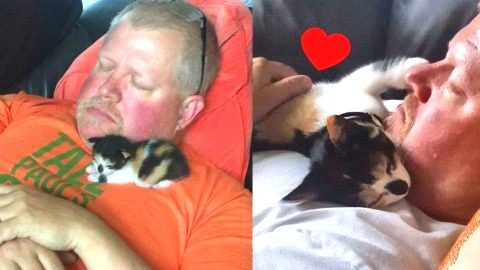 คุณพ่อบอกเกลียดแมวจนไม่อยากจะแตะ แต่ผ่านไป 2 สัปดาห์นอนหลับหนุนกันมุ้งมิ้งมาก