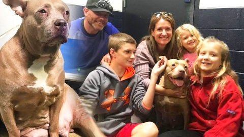 เจ้าตูบพิทบูลถูกทิ้งน้ำตาคลอ-นั่งคอตก กระดิกหางสุดดีใจหลังได้ครอบครัวใหม่