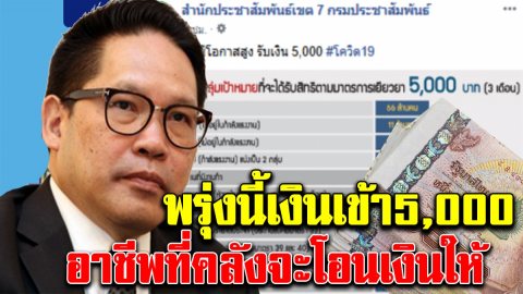 พรุ่งนี้เงินเข้าบัญชี เปิดอาชีพที่คลังโอนเงินให้ 5000
