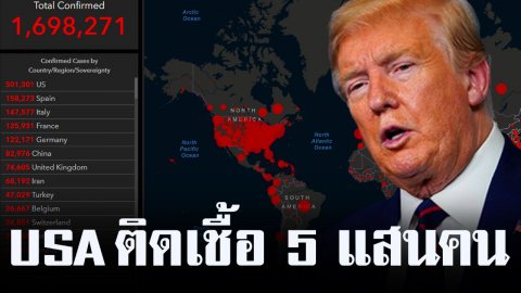 ทะลุ 5 แสนแล้ว! อเมริกายอดผู้ติดเชื้อน้ำลิ่ว ทิ้งห่างประเทศอื่นๆทั่วโลก