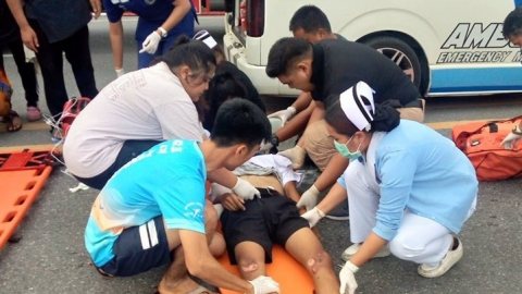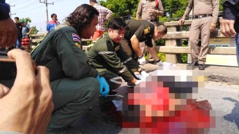 อุบัติเหตุจักรยานยนต์ถูกรถบรรทุกสิบล้อเฉี่ยวชนแล้วหลบหนีบนสะพานคลองควาย
