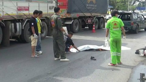 เกิดเหตุสลด!รถบรรทุกพ่วง 18 ล้อเบียดจักรยานยนต์นร.หญิงจบใหม่ล้มทับเสียชีวิตคาที่