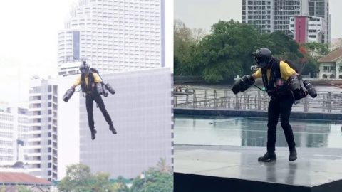 โชว์คนใส่ชุด เจ๊ตสูท แล้วเหาะได้ที่สยามไอคอน