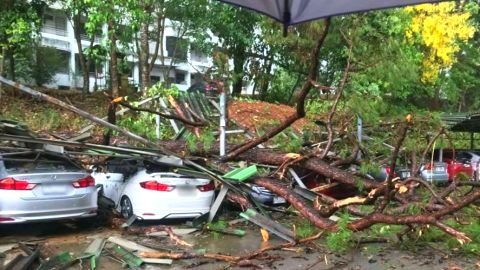 คุณตารอดชีวิตหวุดหวิดต้นไม้ใหญ่ล้มทับขณะนอนเปิดเพลงฟังในรถ