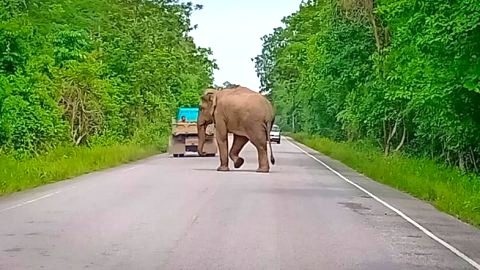 เตือนภัย! "ไอ้ดื้อ" ช้างจิ๊กโก๋ฤาไน เข้าขวางทางรถยนต์ทุกชนิด