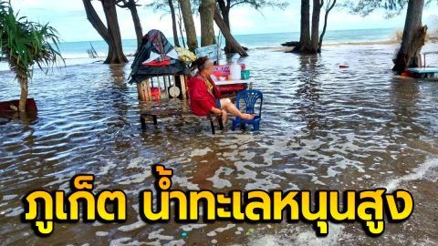 ภูเก็ต สภาพเละเทะ น้ำทะเลหนุนสูง ซัดขึ้นหาดมาจนถึงถนน