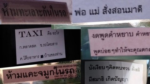 ถึงกับนั่งตัวเกร็ง!! เมื่อชาวเน็ตขึ้นรถแท๊กซี่คันหนึ่ง เจอป้ายเตือนต่างๆ นาๆ ติดเต็มไปหมด