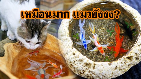 ถึงกับขยี้ตาดู! ปลาสวยในชามหิน แมวเห็นยังหลงกล
