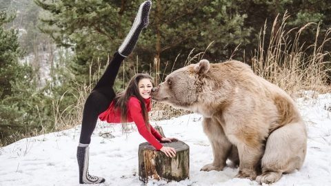 ภาพสวยลีลาเด็ด!! โยคะหมี สาวน้อยกับหมีใหญ่