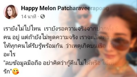 แชร์สนั่น ภาพ "แตงโม นิดา" บนเรือ ลั่น "ลบข้อมูลมือถือ อย่าคิดว่ากู้คืนไม่ได้หรือ ไอ้เพื่อนรัก"