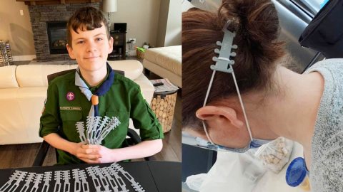 ไอเดียดี! หนุ่มน้อย ใช้ 3d printer ออกแบบที่คล้องสายรัดเพื่อไม่ให้มันกดรัดหูจนหมอพยาบาลปวด เอาไปแจกจ้าย หมอและพยาบาล