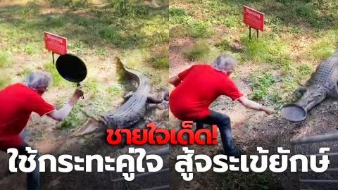 โคตรเทพ!! ชายใจเด็ด ใช้กระทะคู่ใจ สู้กับจระเข้ยักษ์ (มีคลิป)