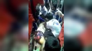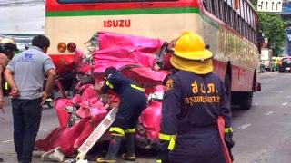 คลิปอุบัติเหตุ (อีกมุม)! แท็กซี่ถูกรถปูนอัดก๊อปปี้กับรถเมล์สภาพยับเยิน คนขับรอดตายปาฏิหาริย์
