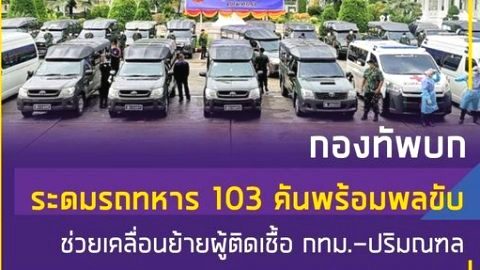 "กองทัพบก" ระดมรถทหาร 103 คันพร้อมคนขับ -ช่วยผู้ติดเชื้อ แถว กทม.-ปริมณฑล