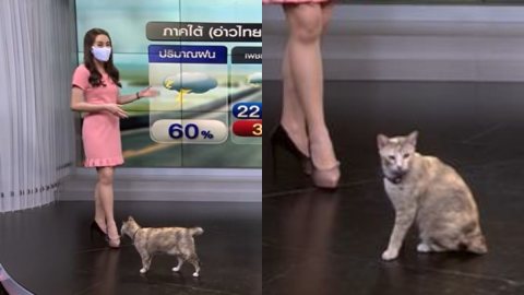 ตอนแรกนึกว่า CG ที่แท้...แมวบุกสตูดิโอ Mcot ..ถึงว่าทำไมอุ้มได้เนียน