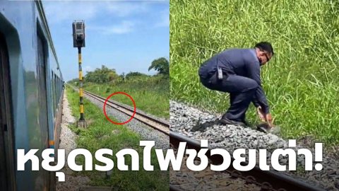 หยุดรถไฟช่วยเต่า! ชาวเน็ตชื่นชม พนง.ขับรถไฟ หยุดรถไฟกะทันหัน ช่วยเต่านอนหงายท้องจากรางรถไฟ
