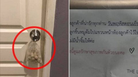 หนุ่มตกใจอยู่ๆมีคนนำลูกชิ้นมาแขวนไว้ อ่านข้อความแล้วน่ารักสุดๆ