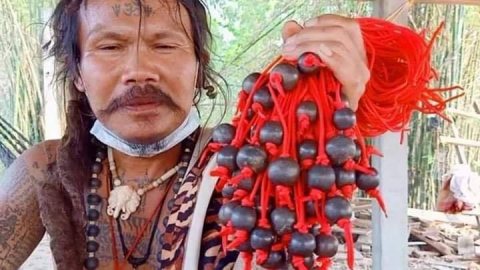 ชาวบ้านผ่านสามเเยก เห็นป้ายเขียนข้อความพร้อมของขลัง ไม่เชื่ออย่าลบหลู่