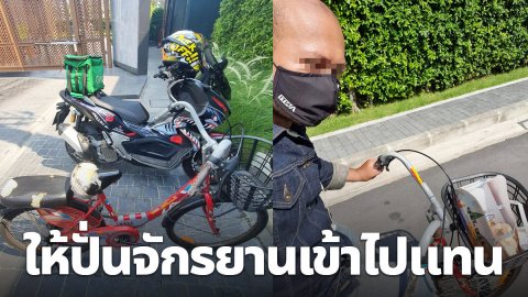 หนุ่มแกร็บสุดมึน เข้าไปส่งอาหารในหมู่บ้าน แต่ถูกบังคับให้ปั่นจักรยานเข้าไปแทน