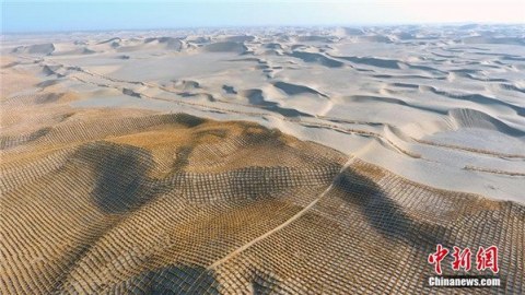 ใช้ตาข่ายครอบทะเลทราย ป้องกันภัยพายุทราย