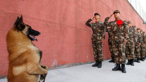 ลาแล้วเพื่อนเอ๋ย! สุนัขตำรวจยืนบอกลาเพื่อนทหารที่เกษียณนานหลายสิบวิ