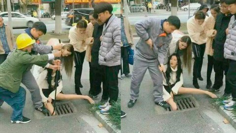 สาวสวยหมดสภาพ เดินตกท่อ-ขาติดแหง็ก เหตุเพราะมัวแต่ก้มหน้าจิ้มโทรศัพท์