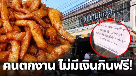 ข้าวหมูทอด-วัดเฉลิม ติดป้ายหน้าร้าน คนตกงานไม่มีเงินกินข้าวให้กินฟรี