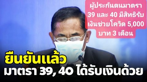 ชัดเจนแล้ว ประกันสังคมมาตรา 39,40 มีสิทธิได้รับเงิน 5,000 บาทด้วย