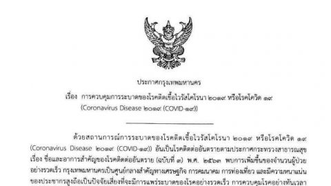 ผู้ว่าฯกทม.ออกประกาศล่าสุด ไม่เดินทางออกนอกพื้นที่กรุงเทพฯ