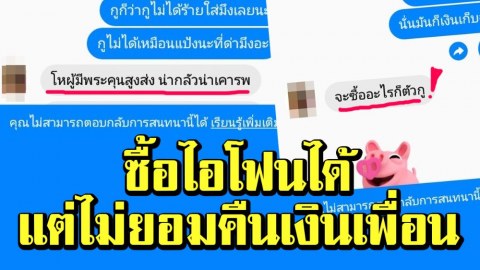 ติดหนี้เป็นปีไม่ยอมคืน เห็นชีวิตดี๊ดีซื้อไอโฟนใหม่ เลยทักเฟสไปทวงเจอด่ากลับ!