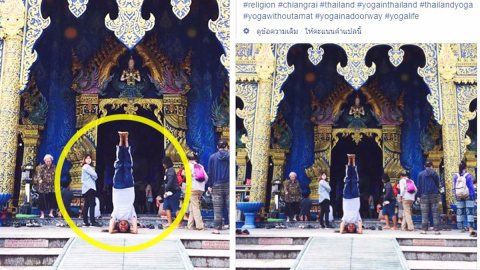 ชาวเน็ตดราม่าหนัก !! หนุ่มทำโยคะยกเท้าสูง หน้าวัดที่เชียงราย แบบนี้เหมาะสมไหม??