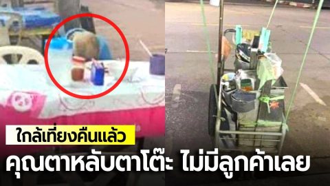 ใกล้เที่ยงคืนแล้ว คุณตาขายกระเพาะปลา หลับคาโต๊ะ ไม่มีลูกค้าเลย