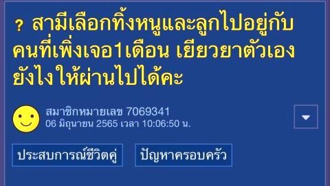 สามีทิ้งหนูและลูก ไปอยู่กับคนที่เพิ่งเจอ 1 เดือน เยียวยายังไงดีคะ?