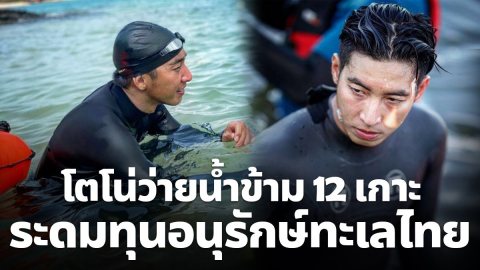 โตโน่ ออกสตาร์ทแล้ว วันแรกของการว่ายน้ำข้าม 12 เกาะ ระดมทุนช่วยอนุรักษ์ทะเลไทย