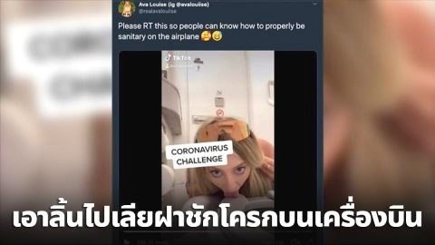 เน็ทไอดอลสาวทำ coronavirus challenge ลง tiktok และทวิตเตอร์ โดยเอาลิ้นไปเลียฝาชักโครกบนเครื่องบิน คนที่ติดตามนางเริ่มทำตาม (มีคลิป)