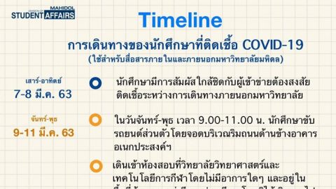 เปิด Timeline การเดินทางของนักศึกษา มหาวิทยาลัยมหิดล ที่ติดเชื้อ COVID-19