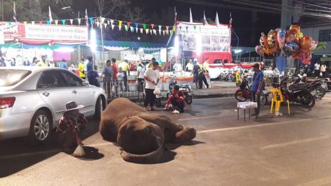 สุดสงสาร เผยภาพช้างนอนหมดแรงอยู่ริมถนน หลังถูกบังคับให้ออกมาเดินเร่ร่อนหากิน