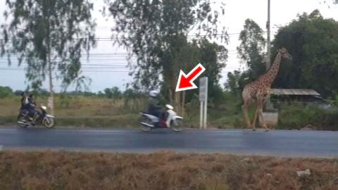 เผยสาเหตุที่ทำให้คนขับรถมอเตอร์ไซค์ชนยีราฟกลางถนน
