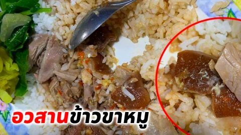 หนุ่มแวะกินข้าวขาหมูในงานประจำปี ก่อนเห็นสิ่งผิดปกติในจาน ถึงกับต้องรีบวางช้อนลงอย่างกะทันหัน