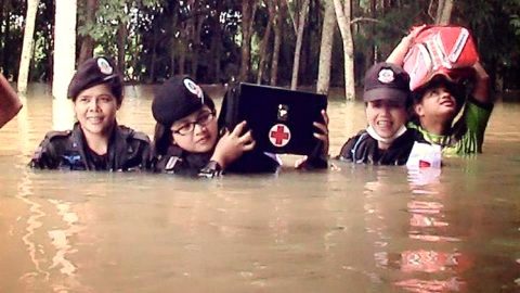 ชื่นชมทหารหญิงลุยน้ำท่วมรักษาพยาบาลผู้ประสบภัยทางใต้