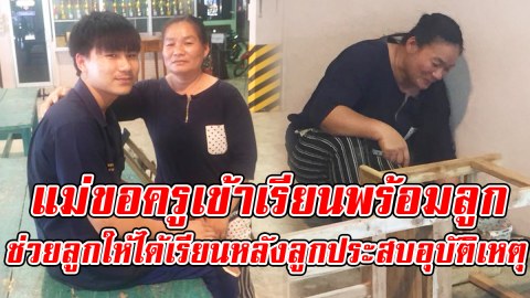 ความรักของแม่ขอครูเข้าเรียนพร้อมลูก ช่วยลูกให้ได้เรียนหลังลูกประสบอุบัติเหตุ