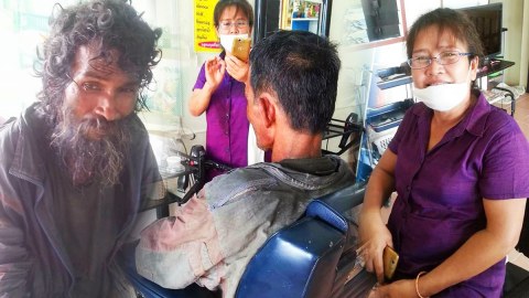 ประทับใจ!! เจ้าของร้านใจดีตัดผมฟรีให้กับ ชายสติไม่ดีคนนี้
