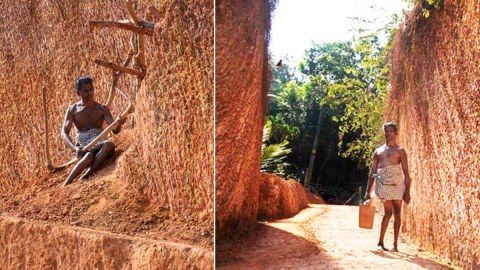 ชายชาวอินเดียพิการครึ่งตัวใช้เวลากว่า 3 ปี เจาะถนนผ่านเนินเขาเล็กๆ ด้วยสิ่วและจอบเท่านั้น