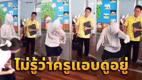 นักเรียนหญิง โชว์ลีลาสุดมันส์ เต้นอยู่หน้าห้องเรียน ก่อนหันไปมองข้างหลัง