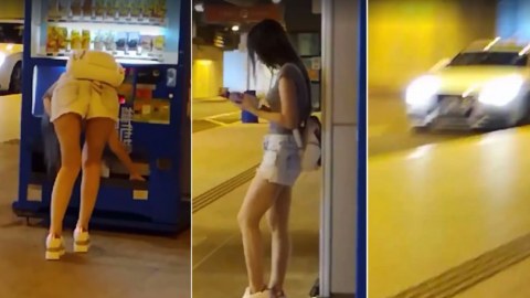 อุทาหรณ์!! สาวนุ่งสั้นมัวแต่ก้มหน้าเล่นมือถือ ไม่ทันได้ระวังตัวจนเกิดเรื่องไม่คาดคิด?