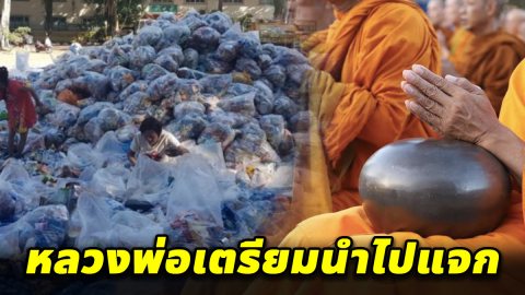 หลวงพ่อ เตรียมนำข้าวสาร-อาหารแห้ง จากงานตักบาตรพระ 10,000 รูปกลางเมืองโคราช แจกจ่ายชาวบ้านเพื่อเป็นทาน