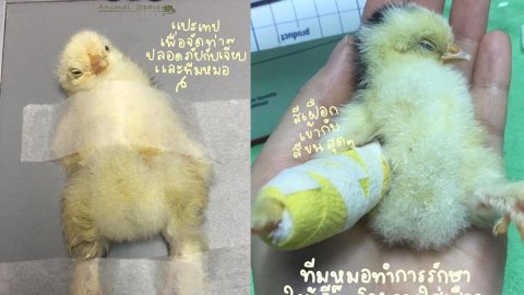 ลูกเจี๊ยบฟักไข่ออกมาได้ 1 วัน เดินขากะเผลก เจ้าของจึงภามาหาหมอ เกิดเป็นภาพน่ารักน่าชัง