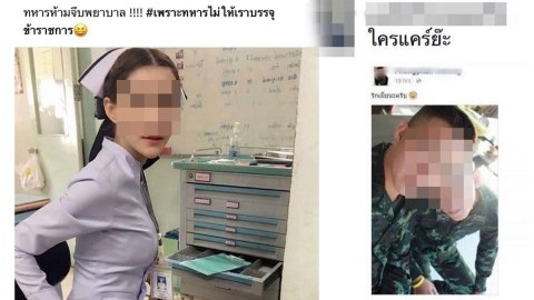 เป็นเรื่อง พยาบาลโพสต์ “#ทหารห้ามจีบพยาบาล” เพราะไม่ให้บรรจุ แต่ทหารสวนกลับมาแบบนี้!!! ถึงกับลบโพสต์แทบไม่ทัน!!