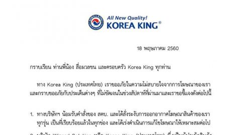 Korea King ออกหนังสือชี้แจง พร้อมขอโทษพรีเซ็นเตอร์คนนี้ด้วย